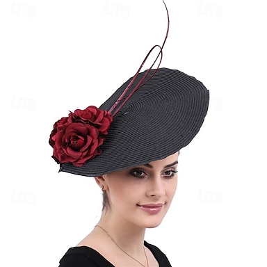 Fascinator Sinamay Matrimonio Compleanno Elegante Vintage Carino Con Fiore Tulle Copricapo Copricapo