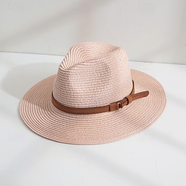 Cappelli Poliestere Paglia Cappello di paglia Cappello da Sole Matrimonio Ferie Tè Corsa di Cavalli Cocktail Vintage Protezione Solare Con Fibbia di metallo Copricapo Copricapo
