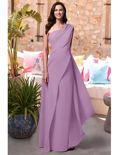 Linea ad A Tubino Colonna Lunghezza al pavimento Vestito da damigella d'onore Vestito da Festa Abito da Cocktail Abito da cerimonia per signora Senza Maniche Monospalla Elegante Formale Ricevimento