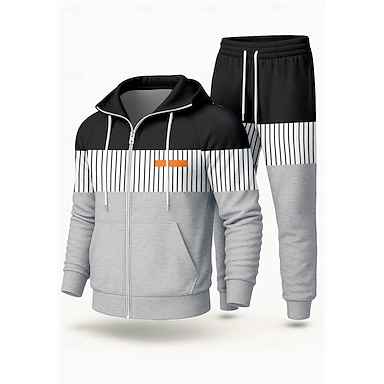 Per uomo Felpa con cappuccio Tuta da Ginnastica Tuta da 2 pezzi Coulisse Con zip Geometrico Completo Abbigliamento Autunno Inverno Nero Arancione Lavoro All'aperto Viaggio Leggero Di tendenza Manica