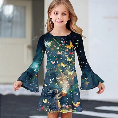 ragazze' 3D Pop art Farfalla Vestito Manica lunga Estate Primavera Da mare Giornaliero Per eventi Da principessa Bellissimo Dolce Bambino 4-12 anni Abito casual Abito linea A Al ginocchio Standard