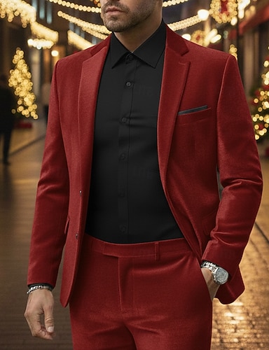 Uomo Abiti da festa Casuale Natale Giallo Rosso Inverno Tuta Bavero classico Natale Festa Tinta unita Vestibilità aderente 2 pezzi Monopetto Due Bottoni