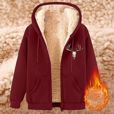 Per uomo Felpa con cappuccio a zip intera Felpa con cappuccio e zip Giacca in Pile Felpa con cappuccio in pile Nero Vino Blu Marrone Verde Con Cappuccio Renna Semplice Stampe Grafiche Cerniera Tasca