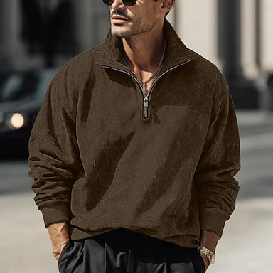 Per uomo Felpa Felpa con cerniera a un quarto Nero Bianco Blu marino Cachi Grigio mezza cerniera Liscio Tasche Sportivo Giornaliero Per eventi Streetwear Fantastico Informale Autunno Inverno