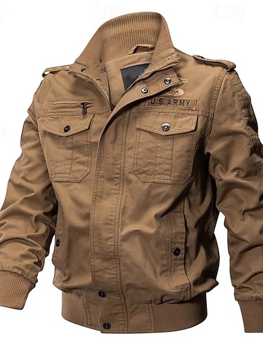 Per uomo Giacca bomber Giacca sportiva Giornaliero Da mare Traspirante Tasche Primavera & Autunno Liscio Di tendenza Classico Bavero Standard Nero Cachi Verde militare Giacca