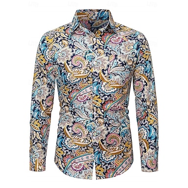 Retrò Vintage Anni '70 Camicia Hippie Paisley Costume Per uomo Feste Abbigliamento quotidiano Parata dell'Orgoglio Adulti Camicia