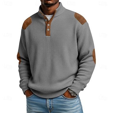 Per uomo Maglietta Waffle Maglia Henley a nido d'ape Camicie da uomo con toppe sui gomiti Manica Lunga Henley Autunno Primavera & Autunno Tinta unica Testurizzato Moda Essenziale Casual Blocco di