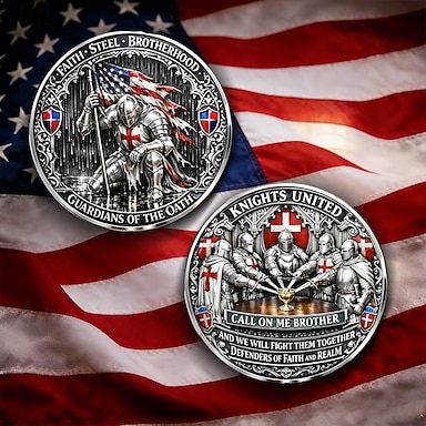 Moneta commemorativa della confraternita dei cavalieri, oggetto da collezione medievale dei guardiani del giuramento, tributo alla confraternita dell'acciaio e della fede, regalo ispiratore per gli appassionati di storia.