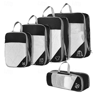 set di cubi da viaggio a compressione per riporre i bagagli e organizzare lo zaino, borse da viaggio in rete espandibili, set da 5 pezzi per risparmiare spazio e organizzare i vestiti