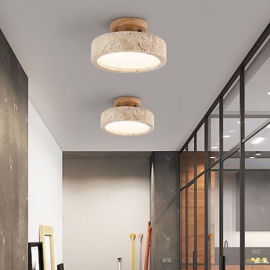 apparecchio giapponese wabi-sabi 1 luce e26 travertino giallo naturale plafoniera stile nordico crema base in legno massello lampade da soffitto b &b ingresso corridoio corridoio ingresso balcone