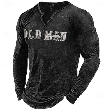 Per uomo Grafico Blocco di colori Fede Maglia Henley Manica Lunga Stampa 3D Quotidiano Retrò Vintage Casual Ferie Uscire Festival Primavera & Autunno Blu Verde Cachi Grigio Henley Maglietta Henley