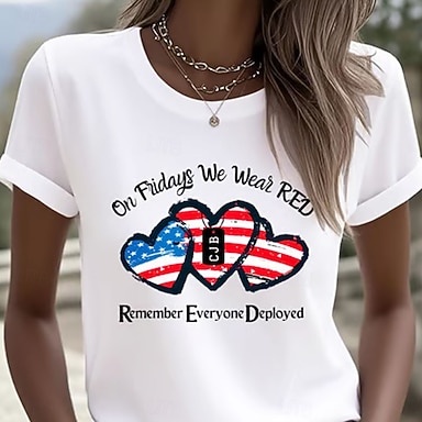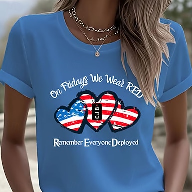 Giorno dell'Indipendenza Maglietta Patriottica da Donna Stampa Grafica Bandiera Elegante Classico Casual Manica Corta V Collo Regolari Top Da Giorno Blu Rossa Rossa Blu Estate Primavera