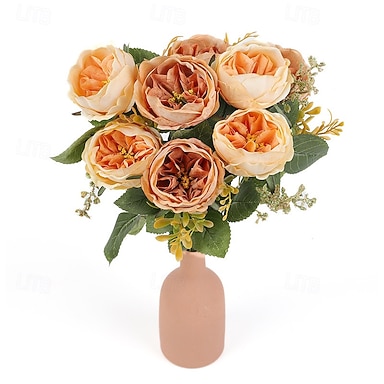fiori artificiali di peonia rosa Austin, composizione floreale finta in stile europeo per matrimoni, esterni, decorazioni per la casa, centrotavola da pranzo