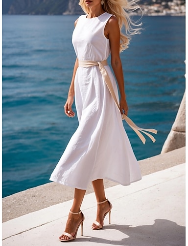 Per donna Abito Midi Abito Bianco Moda Classico Moderno All'aperto Vacanza Uscire Vestibilità regolare Semplice Senza Maniche Girocollo Bianco Estate Primavera