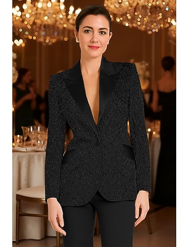 Per donna Blazer Giacca Sportiva Aderente & Svasato Formale Ospite di nozze Vintage Raso Strass Elegante Manica Lunga Bavero classico Risvolto a punta Monopetto