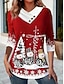 Natale Per donna Maglietta Grafico Pupazzo di neve Fiocco di neve Vintage Elegante Classico Manica Lunga Scollo a V Top Regolari Quotidiano Bottoni Stampato Asimmetrico Rosso Primavera Autunno Inverno