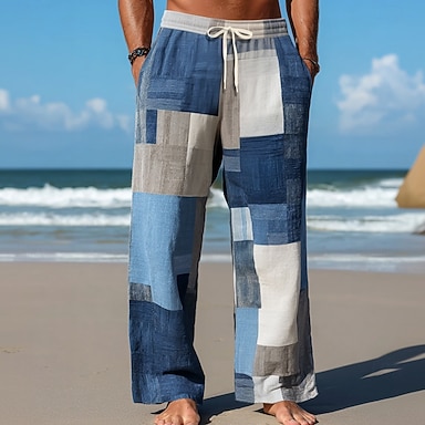 Per uomo Geometrico Blocco di colori Patchwork Pantaloni Pantaloni Larghi Pantaloni casual Misura del girovita medio Moda Casa All'aperto Vacanza Coulisse elastica in vita Pantaloni tipo lino con