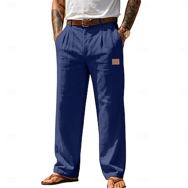 Per uomo Pantaloni di Lino Pantaloni Pantaloni Estivi Pantaloni plissettati Pantaloni eleganti Tasca Frontale Gamba Dritta Semplice Comodità Traspirante Lunghezza intera Casuale Quotidiano Ferie Moda