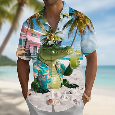 Per uomo Cartoni animati Coccodrillo Ippopotamo Camicia hawaiana estiva Camicia con Bottoni Camicia Aloha Manica Corta Divertente Vacanza Abbigliamento mare Estate Primavera Collo ripiegato Stampa 3D