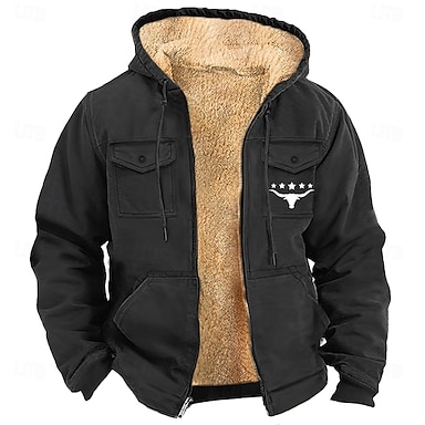Per uomo Tinta unica Cowboy Pile Felpe con cappuccio Moda Cool Quotidiano Vintage Retrò Manica Lunga Con Cappuccio Ferie Abbigliamento casual alla moda Nero Marrone Verde militare Cerniera Tasca