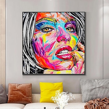 Ritratto di donna colorata, dipinto a mano, dipinto a olio su tela, dipinto a parete, pop art, per la decorazione di casa, hotel, camera da letto
