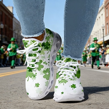 scarpe da ginnastica da donna con trifoglio verde per il giorno di San Patrizio: scarpe da passeggio leggere e traspiranti con suola ammortizzata, stile sportivo festoso per sfilate, viaggi, passeggiate quotidiane, allenamenti e abbigliamento casual