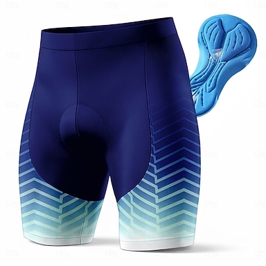Pantaloncini da ciclismo da uomo blu navy con fondello in gel 3D, motivo a chevron sfumato blu, traspiranti, ad asciugatura rapida, che allontanano l'umidità, protezione UPF50+, ideali per ciclismo su