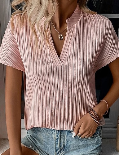 Per donna Blusa Bottoni Semplice Vintage Elegante Manica Corta Scollo a V Top Regolari Quotidiano Ferie Uscire Nero Marrone Rosa Estate Primavera