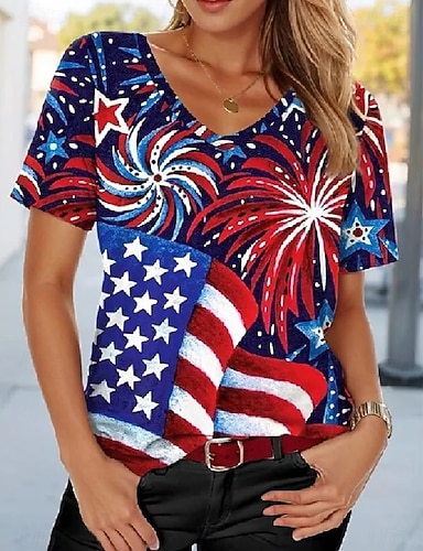 Maglietta Donna Patriottica Americana Festa dell'Indipendenza Stampa Grafica Bandiera Elegante Classica Casual Maniche Corte Girocollo Giro Regolari Tops Quotidiani Blu Nero Bianco Rosso Blu Marino