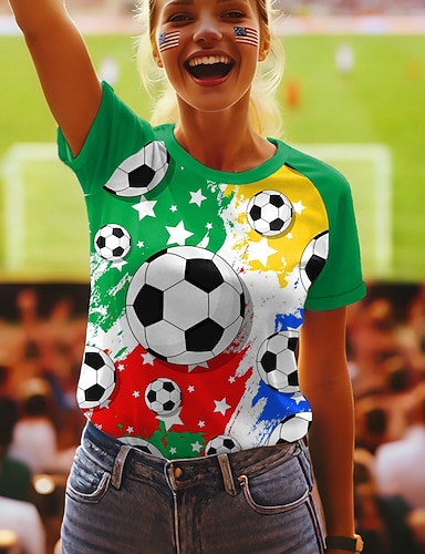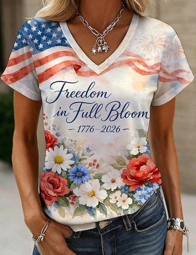 Festa dell'Indipendenza Maglietta Patriottica da Donna Stampa Grafica Lettera Bandiera Americana Elegante Classica Casual Maniche Corte Collo Girotondo Tops Regolari Giornaliero Blu Nero Bianco Rosso