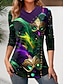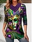 T-shirt da Donna Carnival Grafica Elegante Casual Maniche Lunghe Collo a V Regular Tops Moda Quotidiana Stampa Bottoni Giallo Viola Verde Autunno Inverno