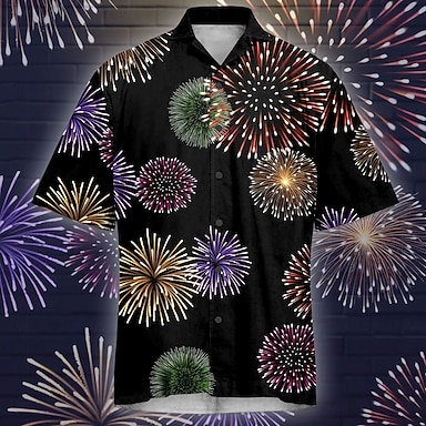 Natale Per uomo Scintillante luccicante Camicia Camicie Camicia hawaiana Manica corta Informale Esterno Da mare Feste Estate Camicie con colletto Abbottonare Stampa 3D Nero