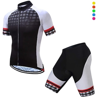 Per uomo Maglia da ciclismo con pantaloncini Manica Corta Mountain Bike MTB Ciclismo su strada Estate Grigio scuro Verde militare Blu Griglia / Plaid Bicicletta Cuscinetto 3D Asciugatura Rapida