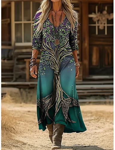 ragazze' 3D Grafico Pavone Abito Manica Lunga Stampa 3D Primavera Autunno Quotidiano Vacanza Feste Casual Principessa Bello Bambini 4-12 Anni Vestito Casual Abito a trapezio Lunghezza al ginocchio