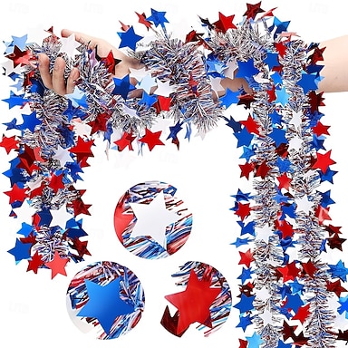 Set di 4 ghirlande di stelle rosse, bianche e blu per il Giorno dell'Indipendenza, lunghe 78,74 pollici (circa 200 cm), ideali per le celebrazioni del 4 luglio, feste, matrimoni, spettacoli teatrali e