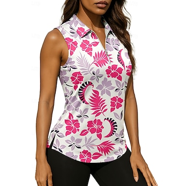 Per donna Floreale Top Maglietta sportiva Polo da golf Maglia da tennis Senza Maniche Cerniera Floreale UPF50+ Resistente ai Raggi UV Alta elasticità Traspirante Tennis Golf Pickleball Collo