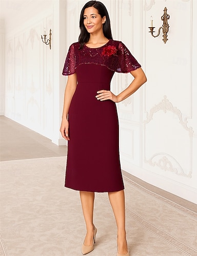 Tubino Colonna Lunghezza Tè Vestito da Festa Abito da Cocktail Abito da invitata a nozze Abito da cerimonia per signora Manica Corta Girocollo Elegante Formale Serata Formale Ricevimento di matrimonio