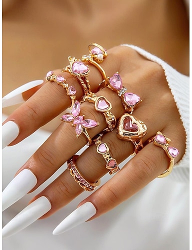 Set di anelli da donna in lega con cuore e farfalla, oro e argento, pezzi multipli, perfetti come regali di San Valentino o da indossare tutti i giorni