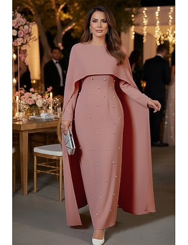 Tubino Colonna Lunghezza al pavimento Abito Formale Abito da sera Abito a mantella Abito da ballo con mantello Elegante Manica Lunga Girocollo Matrimonio Formale Mantelle con Perle Scialle
