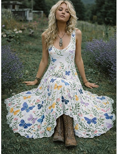 Per donna Abito maxi Vestito Estivo Abito a trapezio Abito Estivo Vacanza Casual Boho Quotidiano Ferie Vestibilità regolare Floreale Grafico Senza Maniche Scollo a V All'americana Bianco Estate