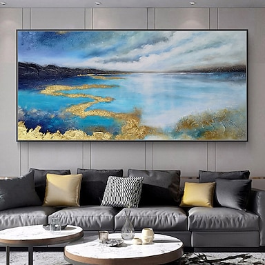 dipinto a mano astratto dipinto a olio spesso su tela moderno blu oro coltello texture dipinti a mano grande arte murale per arredamento casa cornice pronta da appendere o senza cornice