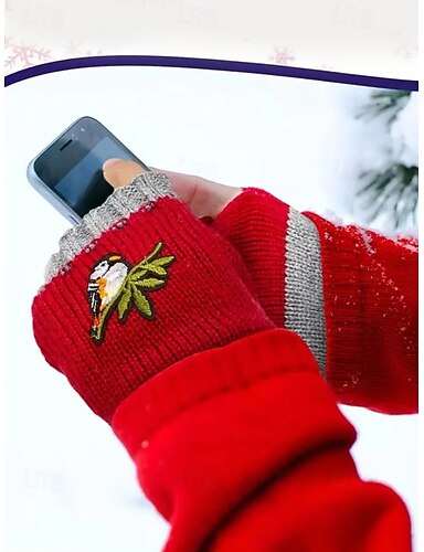 guanti senza dita ricamati con uccelli lavorati a mano - comodi guanti invernali da donna, caldi scaldamuscoli in lana lavorata a maglia