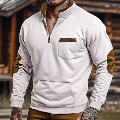 Per uomo Maglia Felpa con zip corta Bianco Colletto Mao Blocco di colori Patchwork Tasca Sport & Outdoor Casuale Quotidiano Vintage Streetwear Casual Primavera Autunno Abbigliamento Felpe con