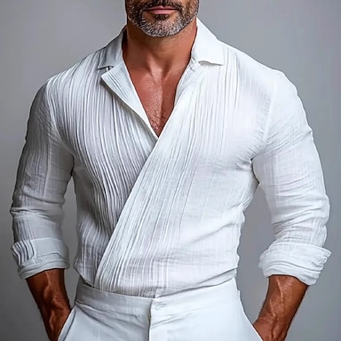 Per uomo Camicia Camicia elegante Camicia non stiro Camicia con Bottoni Tinta unica Quotidiano Affari Nero Bianco Grigio Manica Lunga Collo ripiegato Tutte le stagioni Abbigliamento Pieghettato