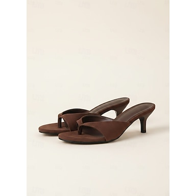 sandali infradito da donna con tacco a gattino nero – mules minimaliste con cinturino a V per feste estive, serate fuori e look casual chic
