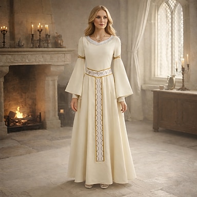 Retrò Vintage Medievale Rinascimento Lunghezza al pavimento Vestito Normale Manica del polsino svasato Vichingo Straniero Taglie Forti Elfico Costume Per donna Celtico Reale Halloween Carnevale