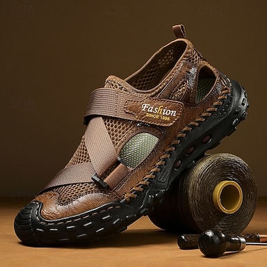 Sandali da uomo marroni da esterno con cinturino regolabile, punta chiusa, comodi da passeggio, traspiranti, sportivi, ideali per viaggi, escursioni, vacanze estive, tempo libero all'aperto e abbigliamento casual di tutti i giorni.