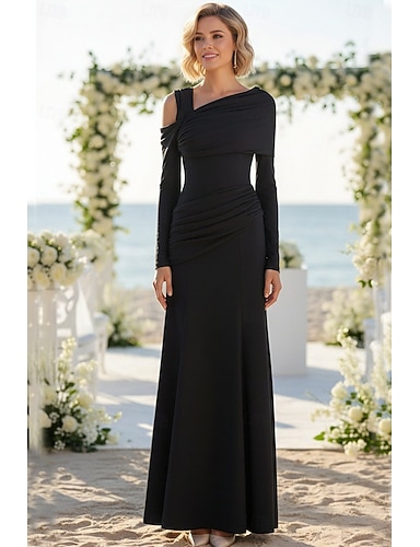 Tubino Colonna Lunghezza al pavimento Vestito da Festa Abito da invitata a nozze Abito da sera Abiti per invitati a matrimoni Elegante Quotidiano Manica Lunga Monospalla Formale con Arricciato