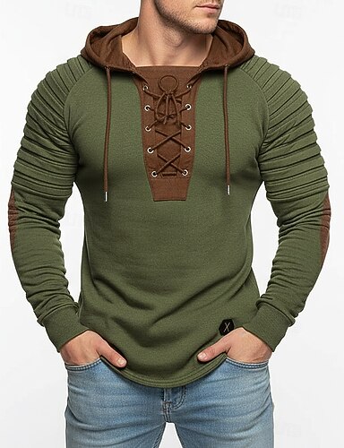 Da uomo Maglietta Camicia a Maniche Lunghe Camicie da uomo con toppe sui gomiti Manica Lunga Con Cappuccio Tutte le stagioni Blocco di colori Sottile pieghettato Moda Designer Essenziale Allacciato