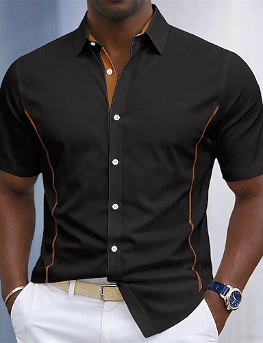 Per uomo Camicia Camicia estiva Camicia con bottoni Nero Bianco Rosa Rosso Viola Manica corta Color Block A quadri Collo ripiegabile Strada Informale Bottone giù Abbigliamento Cotone Misto cotone